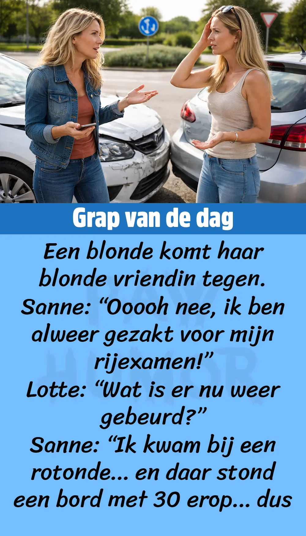 Sanne: “Ik kwam bij een rotonde… en daar stond een bord met 30 erop… dus ik ben 30 keer rondjes blijven rijden!”
