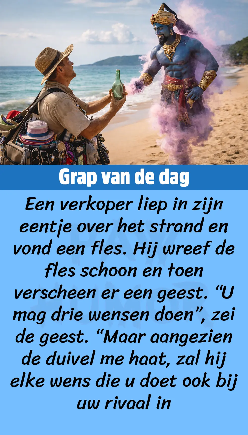 De verkoper dacht hier een momentje over na. “Mijn eerste wens: ik zou graag tien miljoen gulden willen hebben”, zei hij.