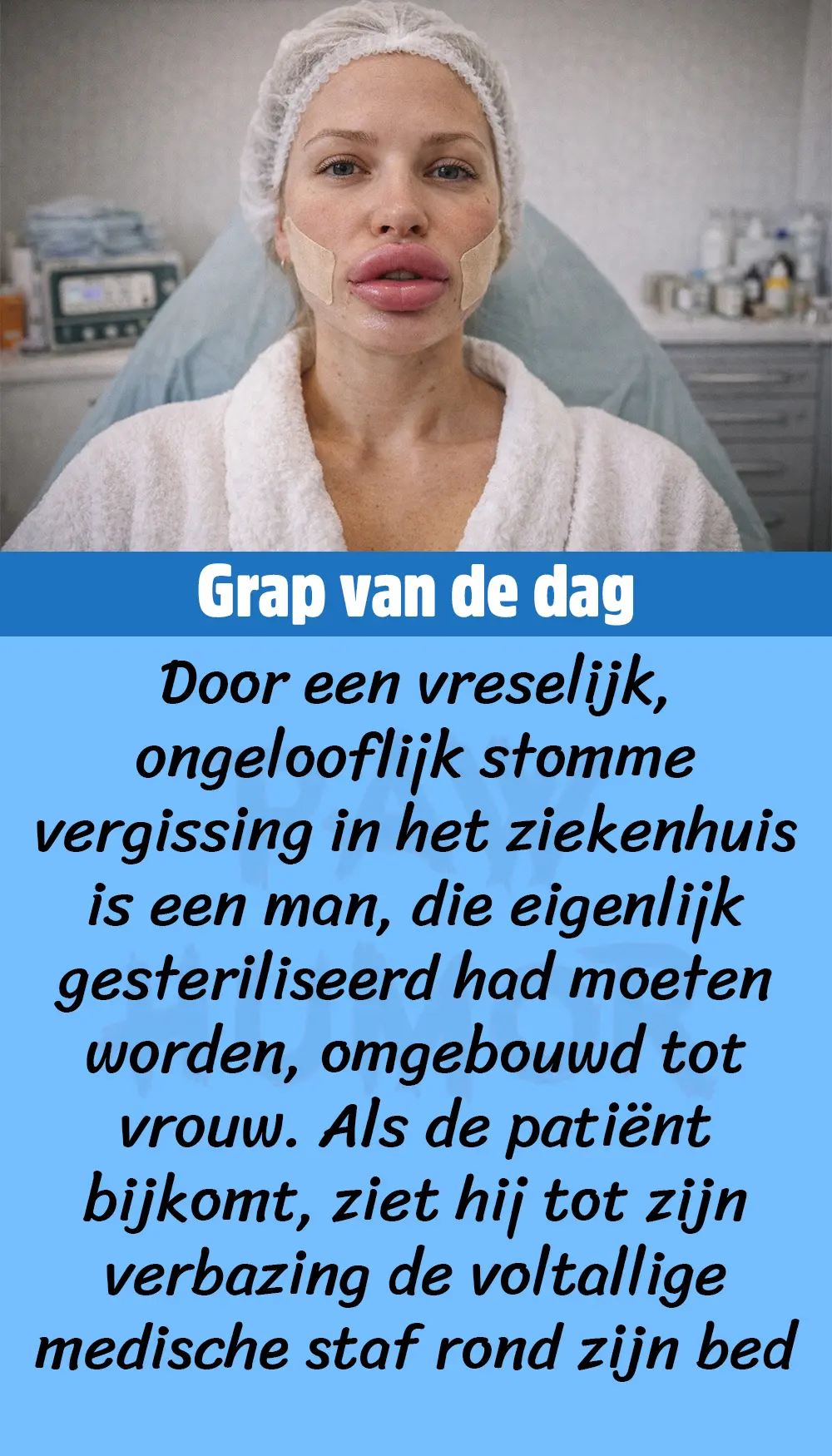 “Maar natuurlijk kunt u dat wel!” antwoordt een van de chirurgen, “maar dat zal dan wel bij iemand anders zijn.”