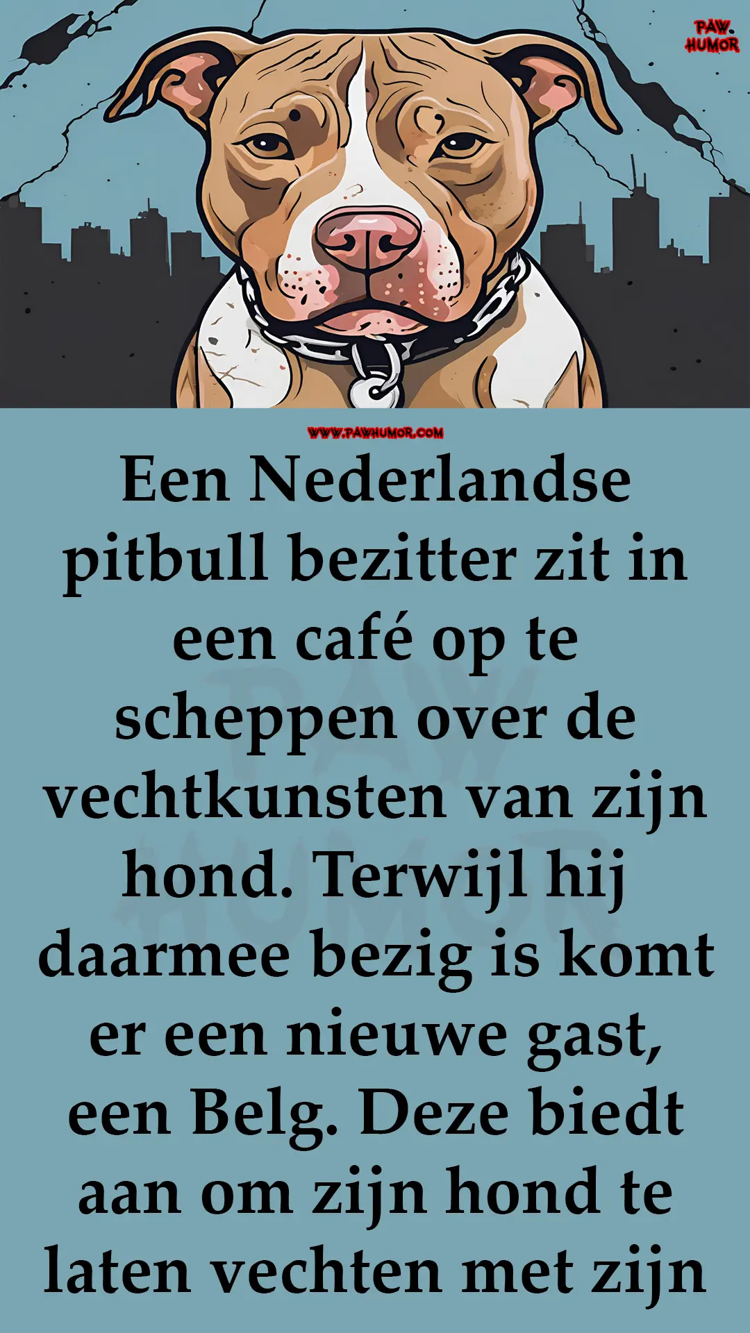 “Als jouw hond als eerste naar buiten komt heb ik gewonnen,” zegt de eigenaar van de tekkkel.