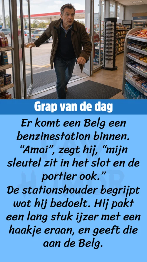 Er komt een Belg een benzinestation binnen
